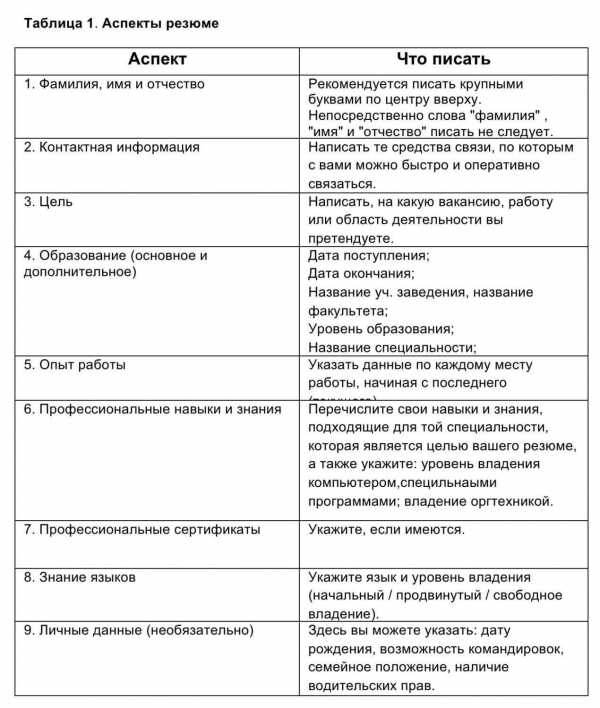 2. Резюме должно быть составлено кратко (лучше на одной странице), четко, без грамматических ошибок. Помните, что резюме – Ваша визитная карточка.