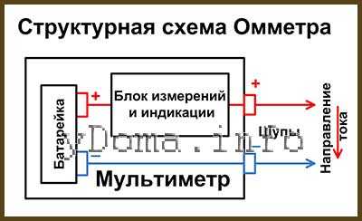 Структурная схема и обозначение на схемах Омметра