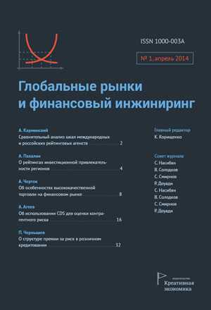 Журнал «Глобальные рынки и финансовый инжиниринг» объединяет публикации теоретического и практического характера на пересечении трех дисциплин: Макроэкономика, Финансовые рынки и Прикладная математика. Предметом исследования являются практические результаты и теоретические модели развития финансовых рынков, новых инструментов, появляющихся и развивающихся на этих рынках. Индексируется РИНЦ. Выпускается с 2014 года при участии Российской академии народного хозяйства и государственной службы при Президенте Российской Федерации. ISSN 2410-8618 (print), 2410-1575 (online).