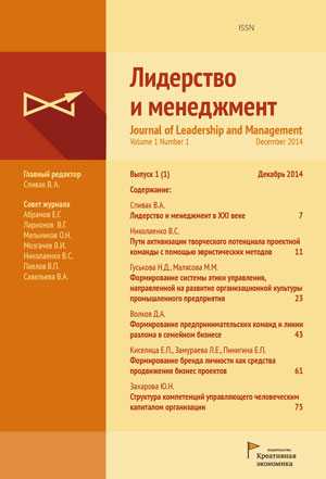 Журнал специализируется на вопросах лидерства и других аспектах менеджмента организации. ISSN 2410-1664. Индексируется РИНЦ, выпускается в печатном и электронном виде.