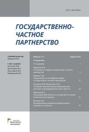 Основной целью журнала является анализ, экспертная оценка и прогнозирование основных тенденций взаимодействия государства и бизнеса как в России, так и в других странах. Основные направления исследований включают классические формы и модели государственно-частного партнерства, альтернативные формы взаимодействия государства и бизнеса, а также национальную специфику взаимодействия бизнеса и власти. Индексируется РИНЦ. Издается с 2014 года. ISSN 2410-8367 (print), 2412-866X (online).