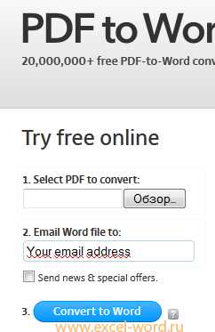 www.convertpdftoword.net – еще один аналогичный сервис, позволяющий перевести документ pdf в word. Пользоваться им также легко и просто. Единственное отличие от предыдущего в том, что вы получаете готовый документ в ворд не на почту, а скачиваете напрямую с сайта.