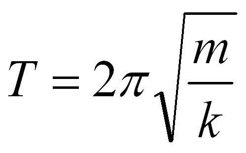 <math>T=2\pi \sqrt{\frac{m}{k}}</math>,