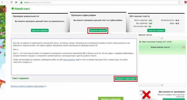 Рис. №1. Запуск проверки орфографии text.ru