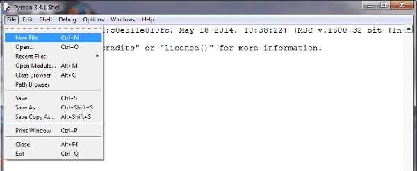 Для того, чтобы создать новое окно, в интерактивном режиме IDLE выберите File → New File (или нажмите Ctrl + N).