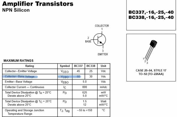 Вот, например, этот параметр для транзистора BC337 структуры NPN: