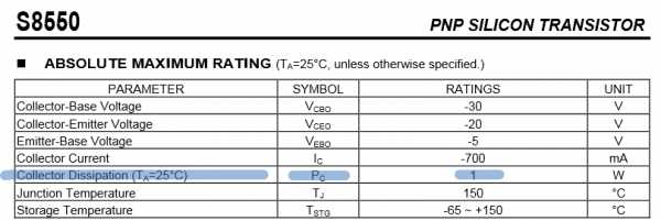 Например, для транзистора S8550 это значение равняется 1 Ватту.