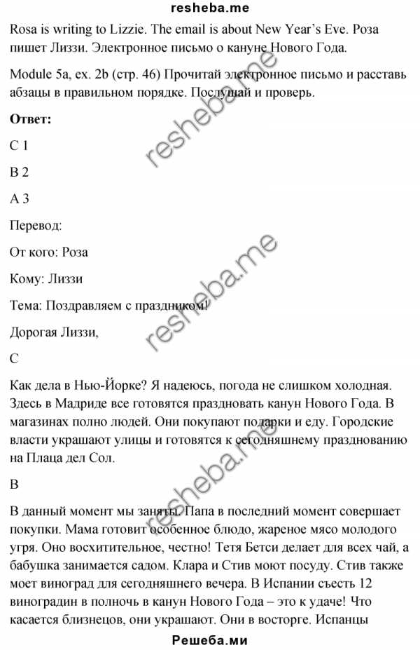 Подробное решение страница 46 по английскому языку Spotlight для учащихся 4 класса, авторов Быкова Н.И., Эванс В., Дули Д., Поспелова М.Д. 2016