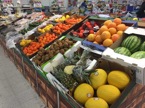 В целом фрукты и овощи любых видов есть в магазинах круглый год. Если не сезон — то везут из более жарких европейских стран. Всегда можно купить дыни, арбузы, цитрусы, ананасы, киви, виноград, манго и т.п.