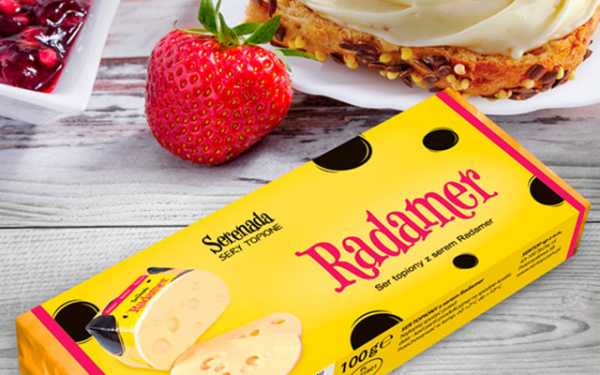 Данная марка сыров известна всему миру. Молочный продукт ярко-желтого цвета имеет в своей структуре большие ровные дырки. Он обладает пряным запахом и сладким сливочным привкусом. Используется в кулинарии для приготовления холодных закусок. Залогом гастрономического удовольствия является сочетание Радамера с овощной нарезкой (огурцами, помидорами, болгарским перцем). Но не стоит усердствовать – овощи могут перебить тонкий вкус продукта.
