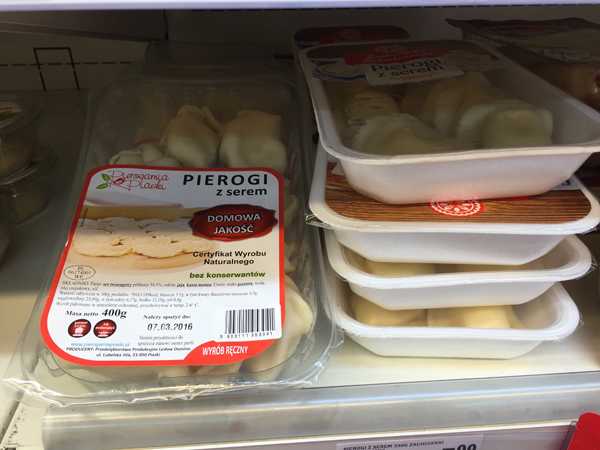 А вот pierogi с мясом брать не стоит. До наших пельменей им как до луны. Туда кладут уже вареный (!) фарш абсолютно ужасного вкуса, тесто тоже противное, и в целом это есть невозможно. Я пыталась, брала разные марки — зареклась покупать, сразу в мусорку. Нормальные пельмени можно разве что делать самим