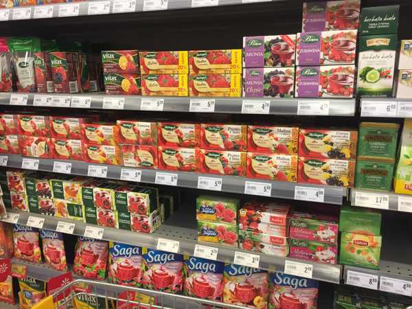 Про кофе ничего не скажу, я его не пью, но вроде выбор хороший. А вот чай — моя любовь. И я особенно рада, что в Польше просто невероятный выбор травяных и фруктовых чаев! Именно не зеленых (хотя их тоже полно с разными добавками, как и черных), а травяных и фруктовых. Из мяты, липы, мелиссы, крапивы и так далее. Фруктово-ягодные — из малины, ежевики, черники, клубники, брусники и разных сочетаний. Обожаю эти сорта. Все местного производства, кстати. В России выбор был скудным.