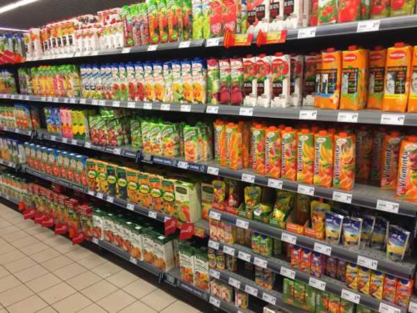 Соков полно любых видов, в том числе ориентированных на детей. В больших коробках могут встречаться не соки, а напитки (у нас их называют «нектарами»), то есть разбавленные соки