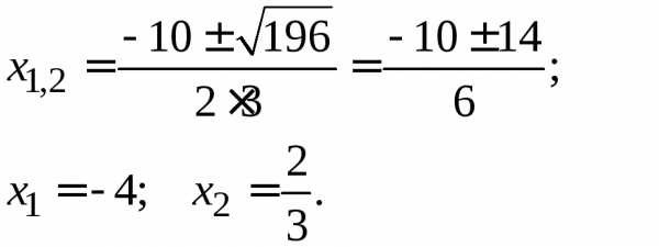 3х2+10х – 8 = 0; | 4х2+15х– 4 = 0; |