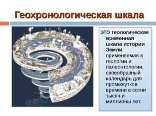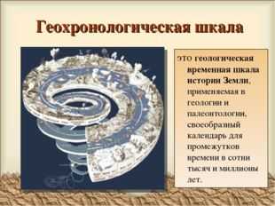 Описание слайда:Геохронологическая шкала это геологическая временная шкала истории Земли, применяемая в геологии и палеонтологии, своеобразный календарь для промежутков времени в сотни тысяч и миллионы лет.