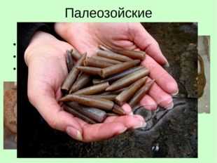Описание слайда:Палеозойские беспозвоночные Трилобиты Аммониты Белемниты