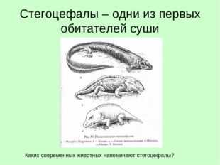 Описание слайда:Стегоцефалы – одни из первых обитателей суши Каких современных животных напоминают стегоцефалы?