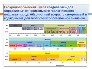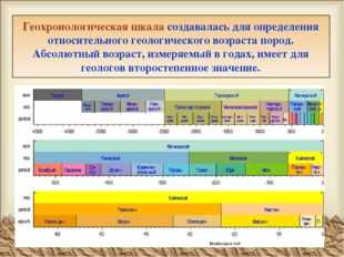 Описание слайда:Геохронологическая шкала создавалась для определения относительного геологического возраста пород. Абсолютный возраст, измеряемый в годах, имеет для геологов второстепенное значение.