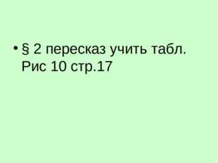 Описание слайда:§ 2 пересказ учить табл. Рис 10 стр.17