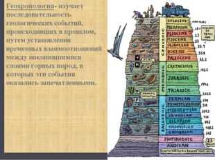 Описание слайда:Геохронология- изучает последовательность геологических событий, происходивших в прошлом, путем установления временных взаимоотношений между накопившимися слоями горных пород, в которых эти события оказались запечатленными.