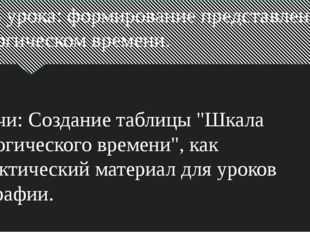 Описание слайда:Цель урока: формирование представления о геологическом времени. Задачи: Создание таблицы “Шкала геологического времени”, как дидактический материал для уроков географии.