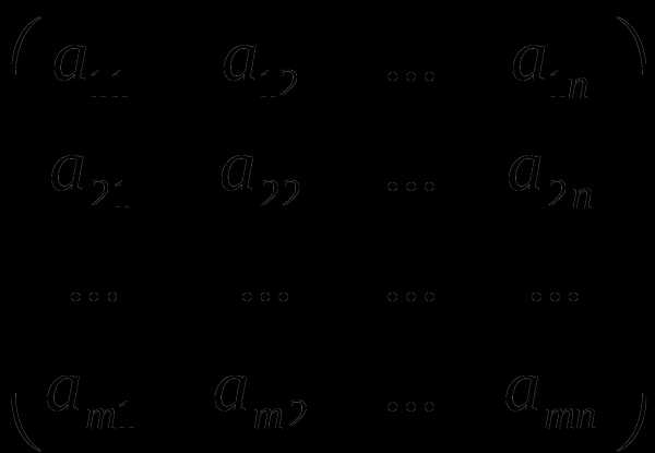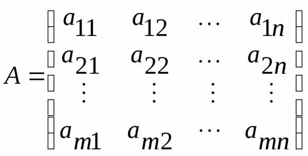 Определение. Матрицей размера mn, где m- число строк, n- число столбцов, называется таблица чисел, расположенных в определенном порядке. Эти числа называются элементами матрицы. Место каждого элемента однозначно определяется номером строки и столбца, на пересечении которых он находится. Элементы матрицы обозначаются aij, где i- номер строки, а j- номер столбца.