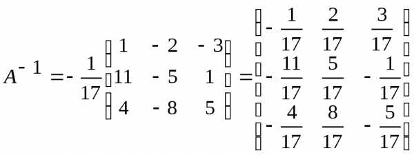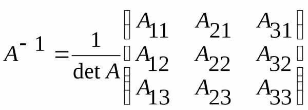 Замечание: Элементами обратной матрицы являются алгебраические дополнения элементов транспонированной матрицы, деление на определитель матрицы.