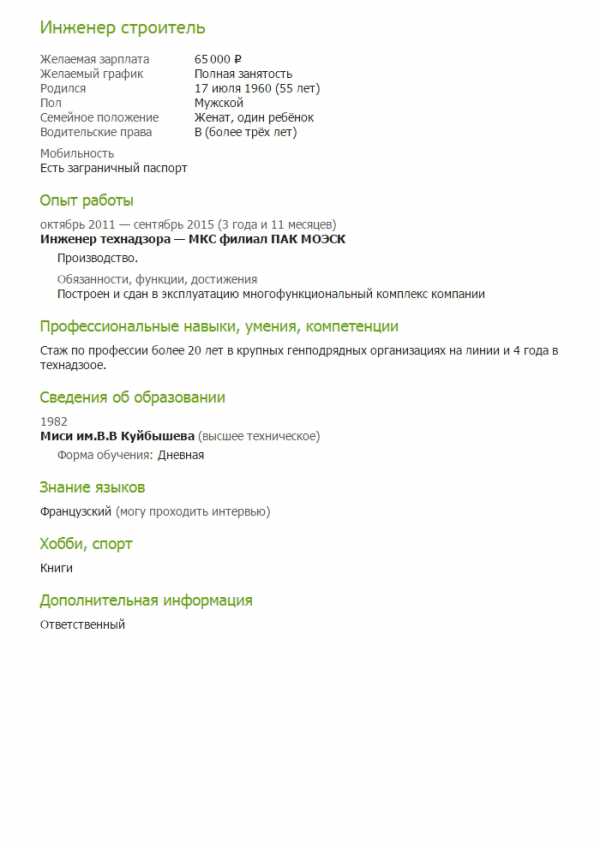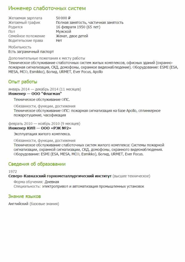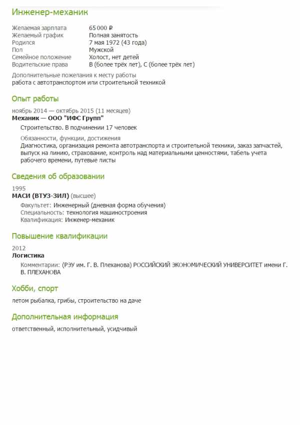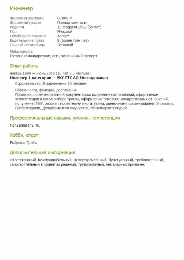 Образец заполнения резюме инженера – Как устроиться на работу – Как составить написать