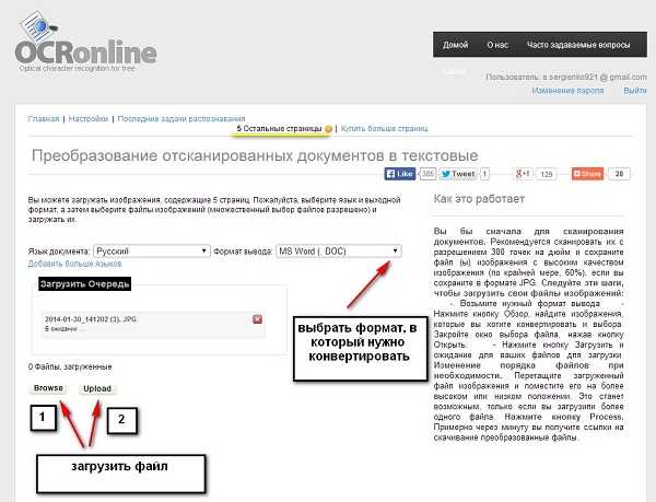 2 шаг. Загрузите картинку, выберите язык, и формат будущего документа. На скриншоте стрелочкой показаны пути.