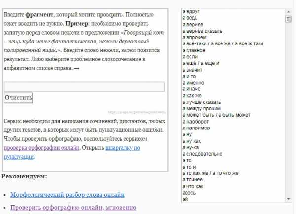 Данный сервис также позволяет проверять пунктуацию, однако, здесь вам можно вводить не весь текст, а только фразу или слово, которое вызывает затруднение при расстановке запятых.