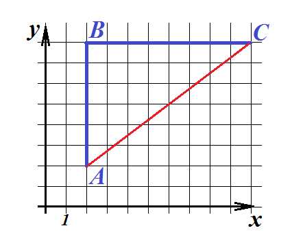 Задача 2. На рисунке показана траектория движения материальной точки. Ее начальное положение – А, конечное – С. Найти проекции перемещения точки на оси и , модуль перемещения и путь, пройденный точкой.