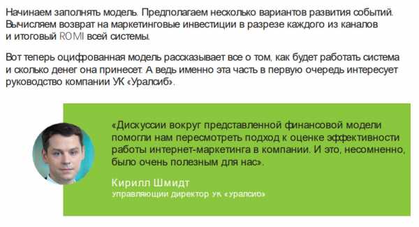 Качество вашей услуги/продукта подтверждено фактами, цифрами и отзывами заказчиков. Вычеркните все общие фразы вроде: «положение компании улучшилось», «конверсия сайта стала выше», «расходы значительно снизились». Представьте неоспоримые доказательства в виде диаграмм и скринов. Попросите клиента дать развернутый отзыв о вашей работе.