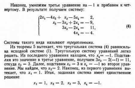 После приведения системы к описанному виду, дальнейшее решение сводится к последовательной подстановке известных переменных в уравнения системы.