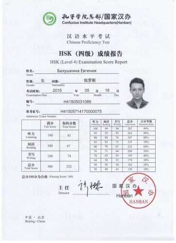 Пример сертификата HSK