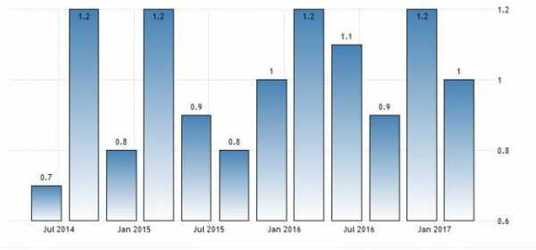 В первом квартале 2017 года ВВП Франции увеличилось на 1%. Это на 0,2% меньше, чем в прошлом, однако больше прогнозных показателей. За период с 1950-го по 2017-ый средний рост ВВП Франции по годам составил 3,19%. Самое большое увеличение показателя было зафиксировано во втором квартале 1969 года. Тогда рост ВВП Франции составил 12,5%. Что касается рекордно низкого показателя, то это значение пришлось на недавнюю рецессию. Во первом квартале 2009 года ВВП Франции уменьшилось на 3,8%.