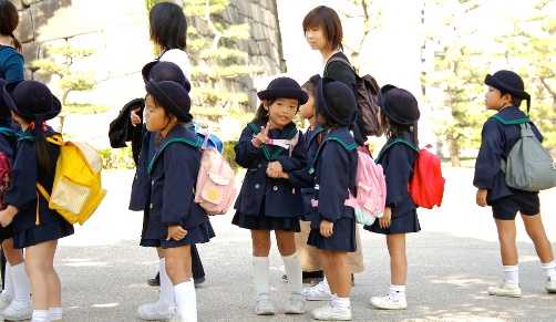Маленькие японцы идут в начальную школу с шестилетнего возраста и продолжают свою учебу здесь до 7 класса. Обучение в средней школе продолжается с 7 по 9 классы. Образование в старшей школе получают в течение 3 лет, до окончания 12 класса.