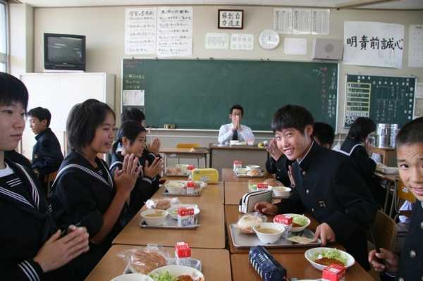 Обедать японские школьники могут целый час. Столовых в школах не существует, горячий обед для детей приготавливают в специальном стерильном помещении, здесь же его помещают в индивидуальные коробочки, которые на тележках привозят в классы.