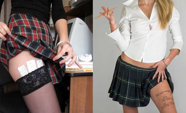 - Хорошо быть девочкой. Под юбкой можно спрятать даже «Войну и мир», не говоря о шпаргалках. Будете вы исписывать ножки или крепить бумажные шпоры к резинке чулков – дело вкуса. В любом случае не забудьте юбку надеть подлиннее, чтобы не оконфузиться.