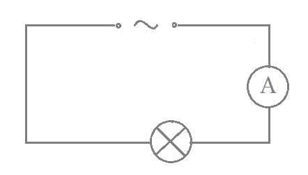 Силу тока измеряют амперметром. В электрической цепи он обозначается так: