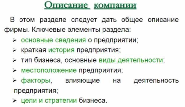 Это следующая важная часть бизнес-плана. В этом разделе дается общее описание предприятия и отрасли: