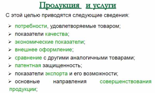 Раздел должен содержать характеристики предполагаемого производства, ряд технологических аспектов. Эти моменты следует описывать простым и доступным языком. Нет смысла углубляться в терминологию, использовать профессиональный стиль. В данном случае достаточно указать на уникальность услуг или изделий, востребованность в ближайшем и обозримом будущем. Также можно обратить внимание инвестора на преимущества предлагаемой продукции.