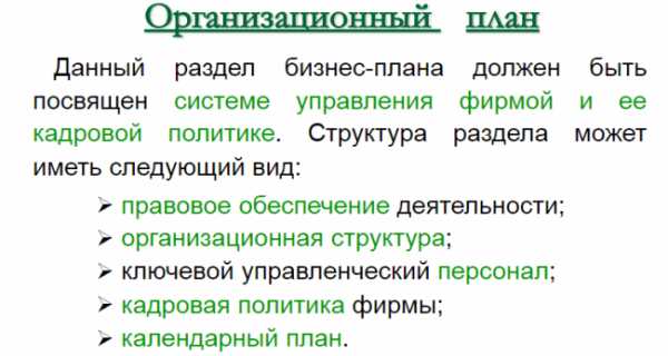 - организационный план;