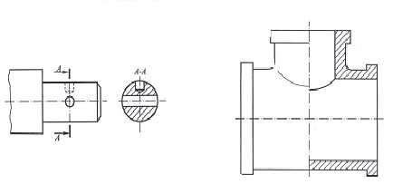 Симметричные изображения допускается показывать до оси симметрии или больше половины с проведением линии обрыва. Если предмет имеет несколько равномерно расположенных одинаковых элементов (например, отверстий), то допускается показывать один элемент с указанием их числа, а остальные показывают упрощенно или условно. На изображениях допускается показывать упрощенно линии пересечения поверхностей. Так, например, на рисунок 9.10 проекция кривой четвертого порядка пересечения двух цилиндров упрощенно показана дугой окружности, а на рисунке 9.11 – прямой. Плавный переход от одной поверхности к другой условно показывают сплошной тонкой линией, которая не касается контурных линий.