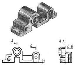 Условности и упрощения. Для того чтобы чертежи сделать более простыми и понятными, а также с целью экономии времени при выполнении чертежа, ГОСТ 2.305-68 устанавливает следующие условности и упрощения. Например, допускается совмещать два разреза, если каждый из них представляет собой симметричную фигуру. На рисунке 6 совмещены половина профильного ступенчатого разреза А-А и половина простого профильного разреза Б-Б.