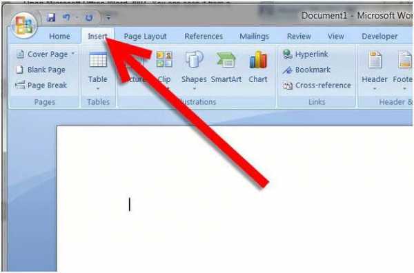 Для начала откройте редактор Word. Вверху на панели есть вкладка “Вставить” (Insert в версиях на английском языке).