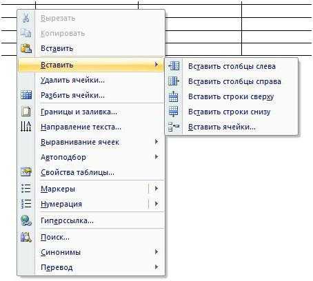 Если вы хотите увеличить свою таблицу, нужно отметить курсором какую-нибудь ячейку и вызвать меню нажатием правой клавиши мыши. Там есть специальный пункт “вставить”. Нажав на него, вы откроете еще дополнительное окошко с другими операциями.