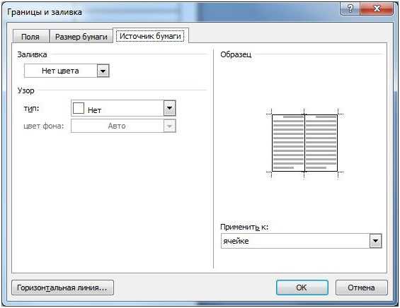 Изначально у вас будет открыта вкладка “Поля”. Вам нужно перейти на вкладку “Источник бумаги”. Там есть пункт “Заливка”. Выбирайте любой нужный вам цвет и нажмите на “Ок”.