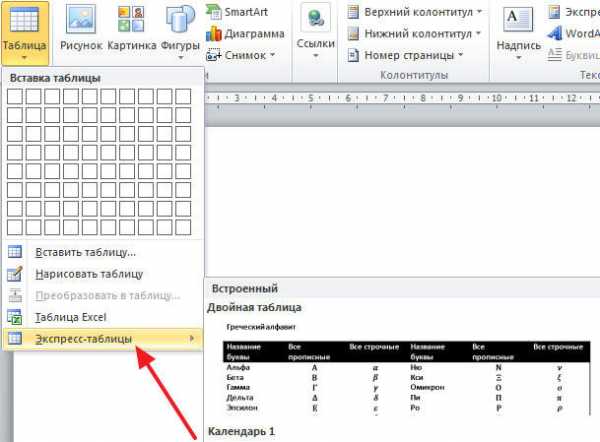 — Пятый способ: «Вставка»- «Таблица» — «Экспресс таблицы» — выбираем нужный нам готовый шаблон