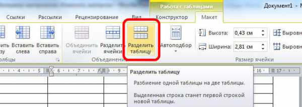 Если вы думаете, как разделить таблицу в “Ворде”, то это очень просто. Встанье на нужную строку и нажмите Ctrl+Shift+Enter. И она разделится на 2 части.