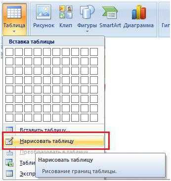 Кроме этого, можно нарисовать таблицу. Это следующая строчка в меню после вставки таблицы.
